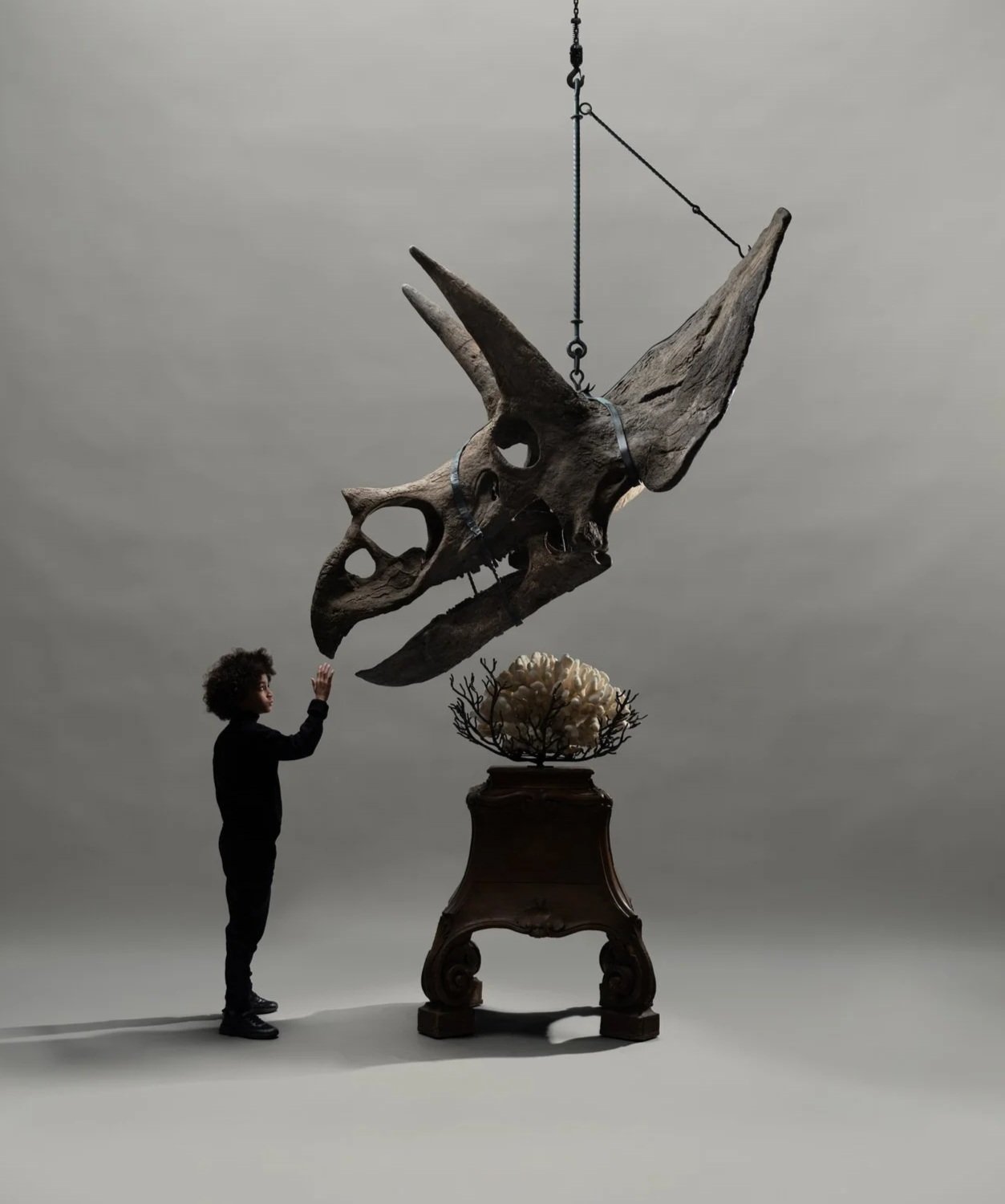 RELICS was created using dinosaur and other fossil remains that are tens of millions of years old. Among other pieces, the collection boasts a reimagined fifteen-meter-long Basilosaurus (45 million years old), a Mosasaurus (70 million years old) and a Triceratops skull (67 million years old).