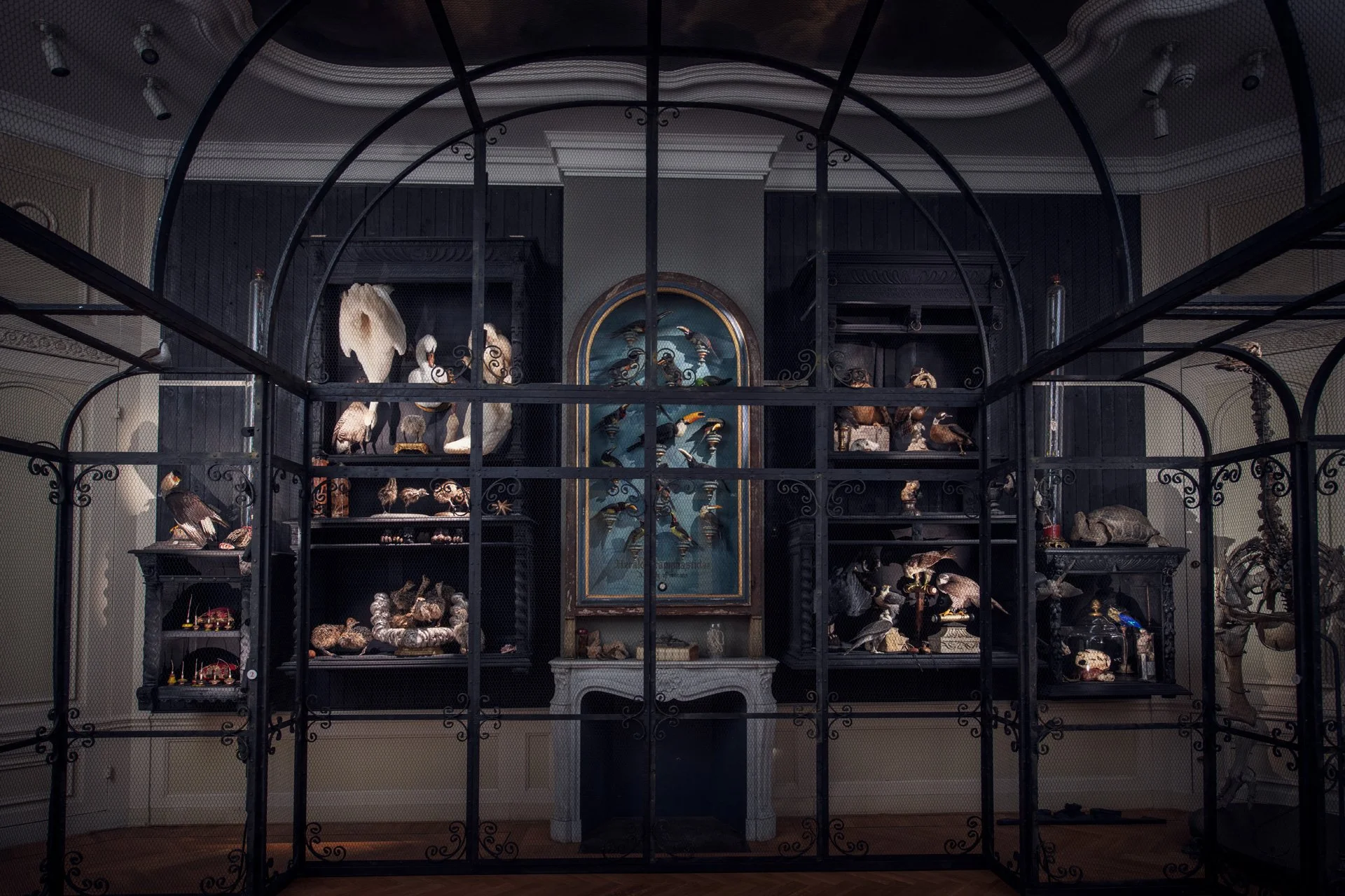 Art Zoo Museum, gehuisvest in een van de meest betoverende monumentale grachtenpanden uit de 17e eeuw, is een ode aan de dierenwereld en aan de natuur. In deze oase in hartje Amsterdam krijgt de adembenemende taxidermie kunst van Darwin, Sinke & Van Tongeren een bijna theatrale dimensie. Veren glanzen, spieren zijn gespannen, ogen lijken je met belangstelling te volgen. Vanuit reusachtige volières kijk je naar een wereld waar dieren heer en meester zijn: tijdloze stillevens met de grandeur van Hollandse meesters. Van kleurrijke vogels en kronkelende slangen tot imposante krokodillen en een T-Rex – het is net alsof ze ieder moment weer tot leven kunnen komen.